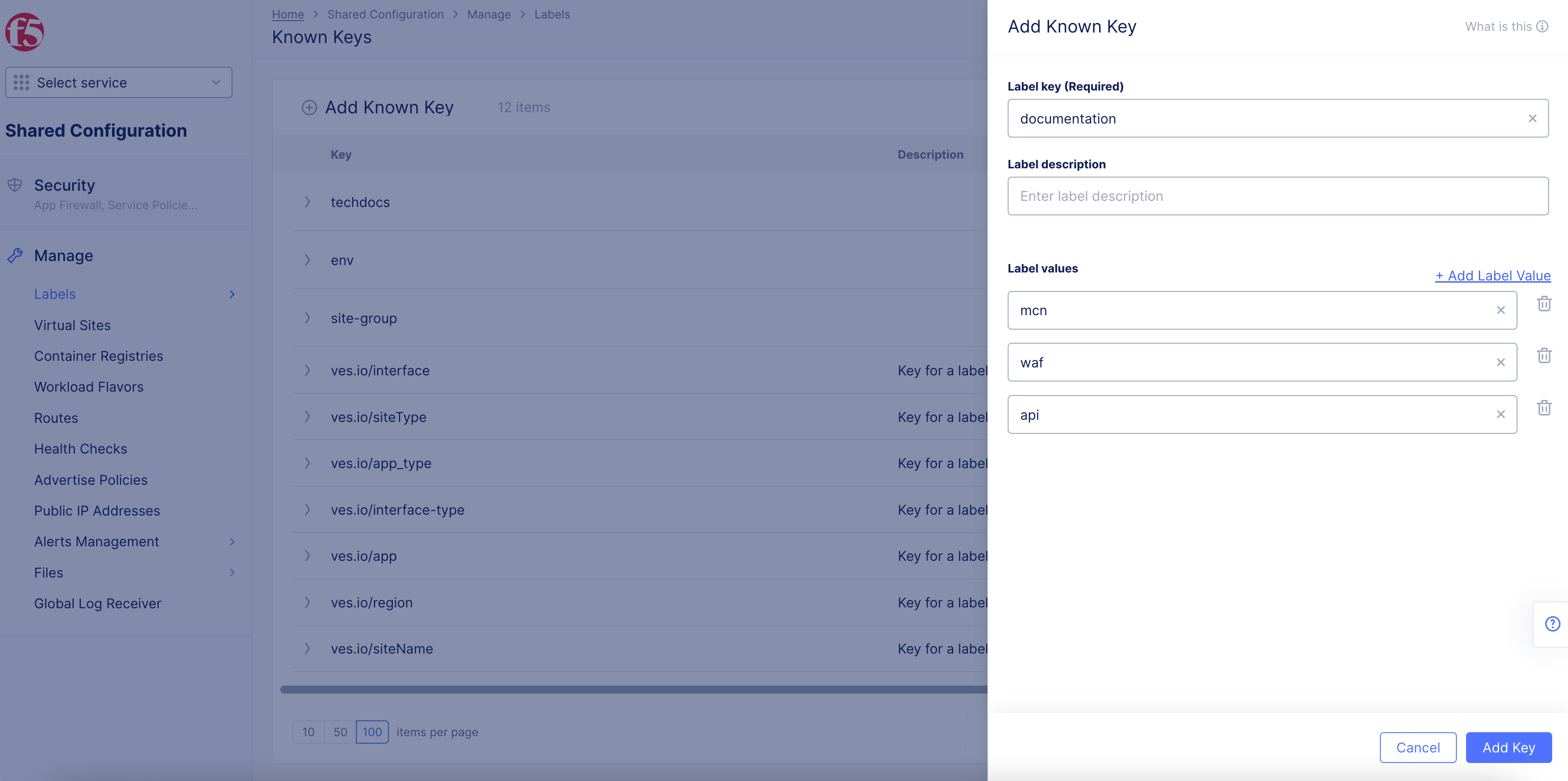 Navigate to Select Manage > Label > Known Labels to verify all keys and their values.